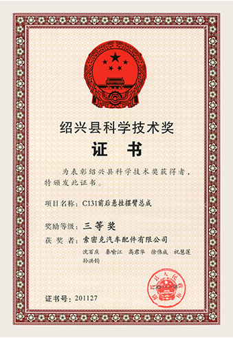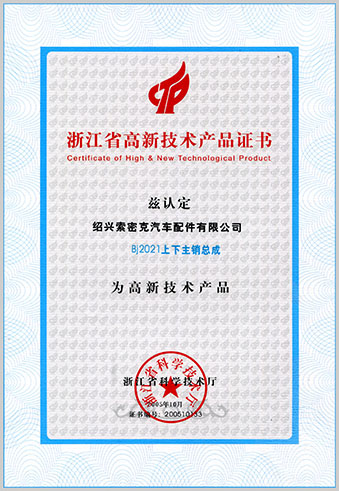 公司已先后通過IATF16949質(zhì)量管理體系認證、ISO/14001環(huán)境管理體系認證和OHSAS18001職業(yè)健康安全管理體系認證。是“國家高新技術(shù)企業(yè)”“行業(yè)龍頭企業(yè)”和“全國百家優(yōu)秀汽車零部件供應商”。